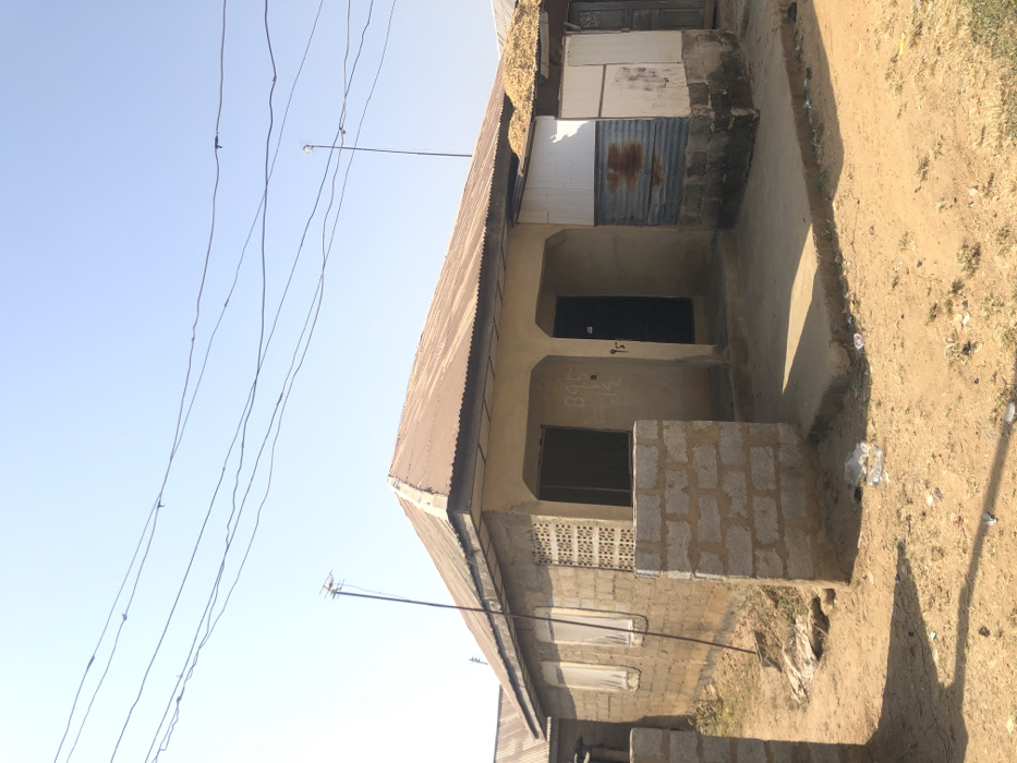 The image depicts a single-story residential building located in Kurudu, Nigeria, under a clear, bright blue sky