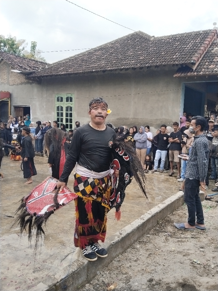 An outdoor scene in Kerjo, Indonesia, depicts a cultural event under an overcast sky