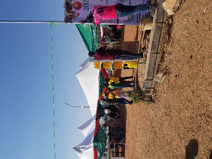 The image depicts an outdoor event on a clear, sunny day in Jos, Nigeria