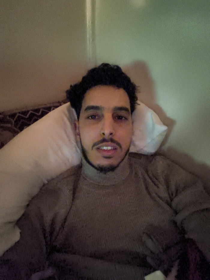 - "A man with dark curly hair and a trimmed beard is lying down, possibly in bed, propped up by a pillow" by FM-avgrT2, licensed under CC BY 4.0