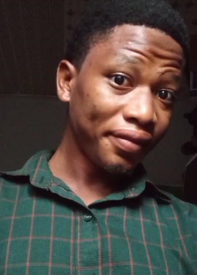 A close-up shot shows a young man with short, dark hair and wearing a green and red plaid shirt