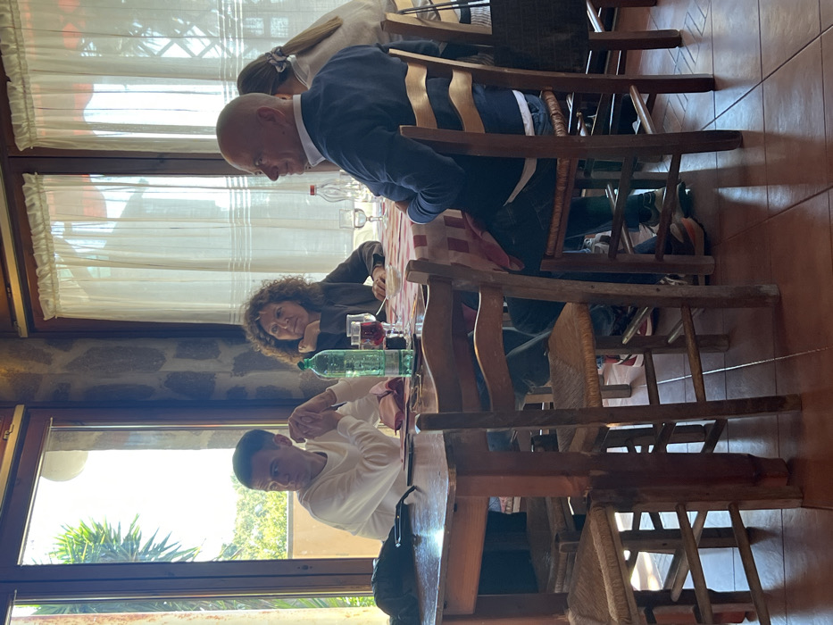 The image displays an indoor dining scene, identified as being located in Civitavecchia, Italy