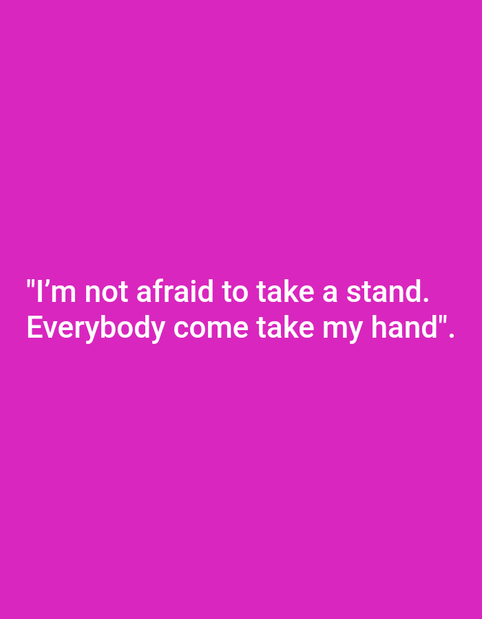 A digital image features a solid magenta background (hex #EE3B97). Centered horizontally on this background are two lines of white, sans-serif text. The first line reads: "I'm not afraid to take a stand." The second line reads: "Everybody come take my hand". No individuals, tangible objects, actions, interactions, or specific environmental details beyond the colored background and text are present within the image frame. The scene is associated with the city of Парэчча, Belarus.