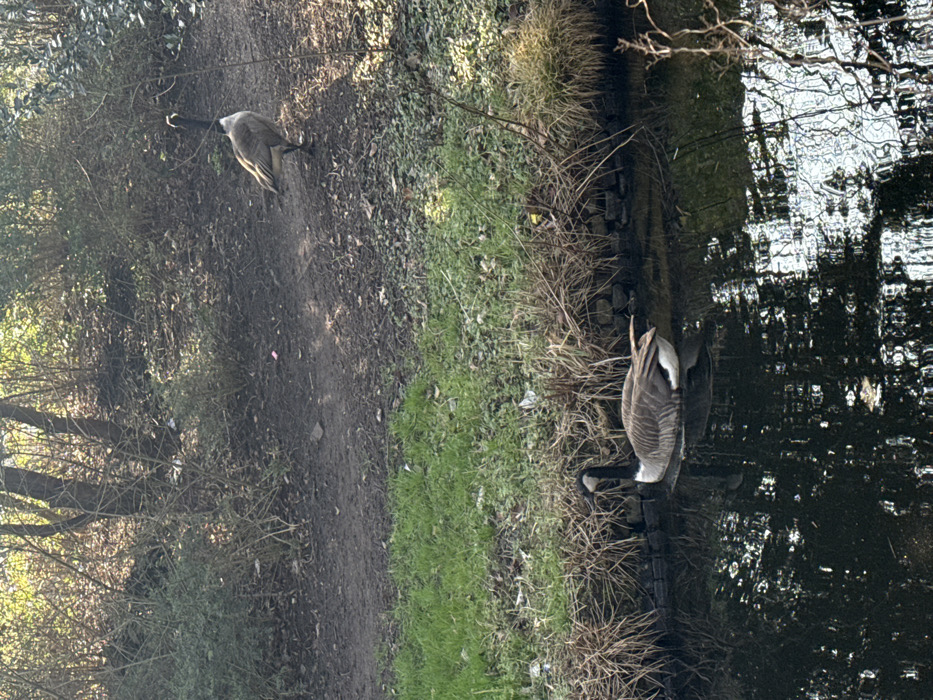 - "The image depicts an outdoor scene in The Hague, Netherlands, featuring two Canada Geese within a natural setting adjacent to a body of water and a dirt path" by FM-4p8pq1, licensed under CC BY 4.0