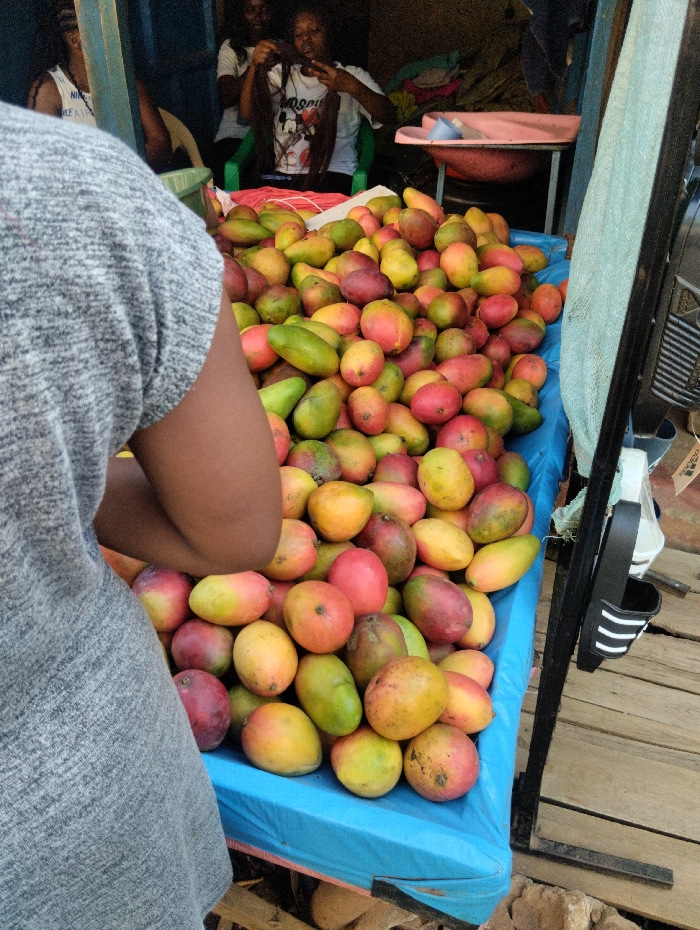 - "A large pile of ripe mangoes sits atop a blue-covered table, taking up most of the frame" by FM-ceYJN2, licensed under CC BY 4.0