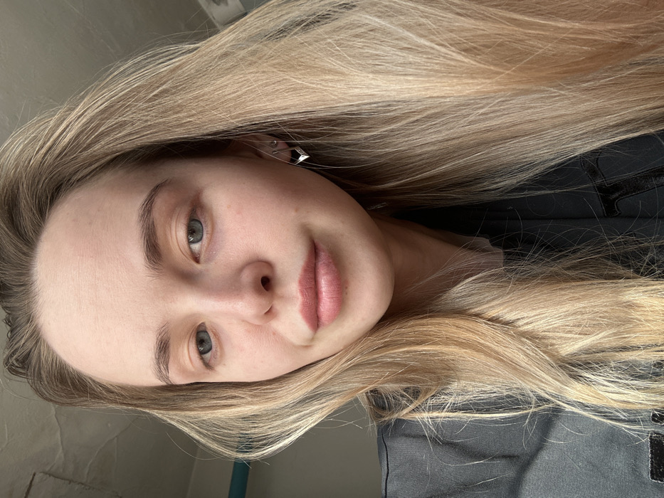 - "A close-up, chest-up portrait depicts a young adult female with light skin, blue eyes, and long, straight, light blonde hair parted slightly off-center" by FM-yfHk32, licensed under CC BY 4.0