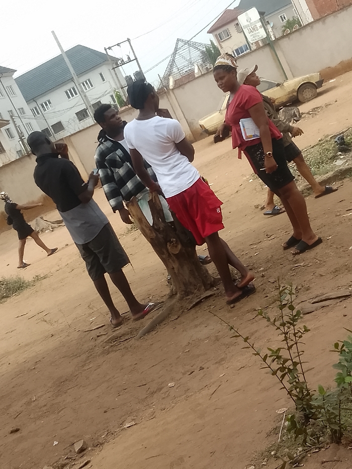 The scene is set in an unpaved dirt area within Umuokpu, Nigeria