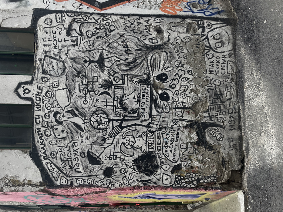 - "A weathered concrete wall in an urban environment in Belgrade, Serbia, is entirely covered by a dense, monochromatic mural executed primarily in black and white paint" by FM-OCIIB3, licensed under CC BY 4.0