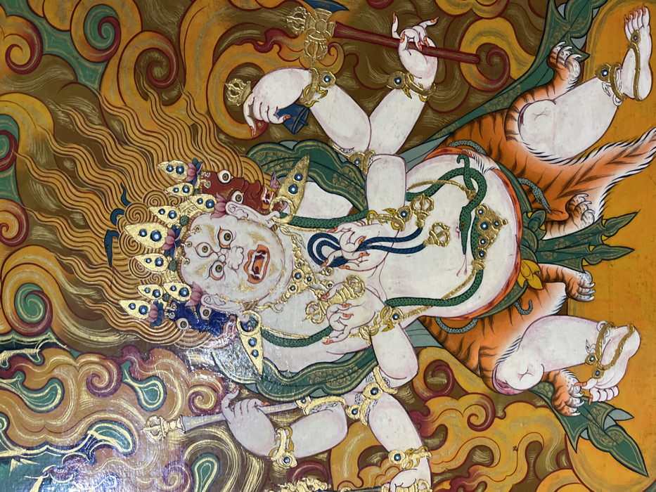- "This image presents a detailed painting or mural of a wrathful multi-headed, multi-armed deity, rendered in a style consistent with Tibetan Buddhist art" by FM-VYYYD2, licensed under CC BY 4.0