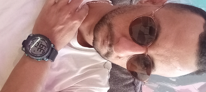 - "A male individual is captured in a close-up, downward-angled photograph, consistent with a selfie, taken indoors in the city of Meknes, Morocco" by FM-MM3Sy2, licensed under CC BY 4.0