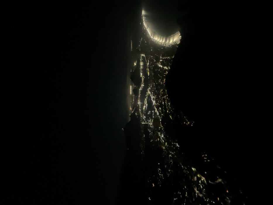 - "An aerial nighttime view features city lights clustered along a coastline" by FM-JESCq2, licensed under CC BY 4.0