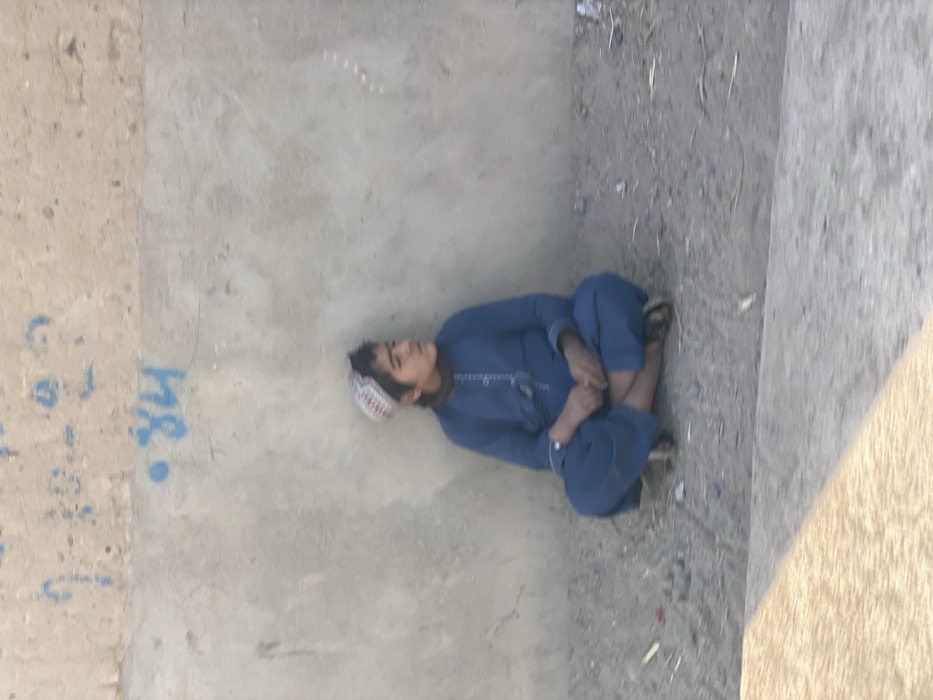 - "A young male individual is depicted sitting cross-legged on dusty, light brown ground, leaning against a light gray concrete or stucco wall in Arghandab, Afghanistan" by FM-B5wmg2, licensed under CC BY 4.0