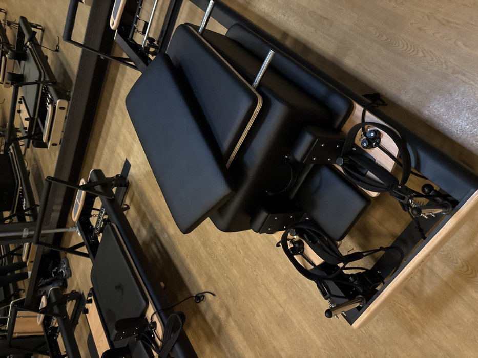 - "The image displays an indoor Pilates studio, primarily featuring multiple Pilates reformers" by FM-4LvFn2, licensed under CC BY 4.0