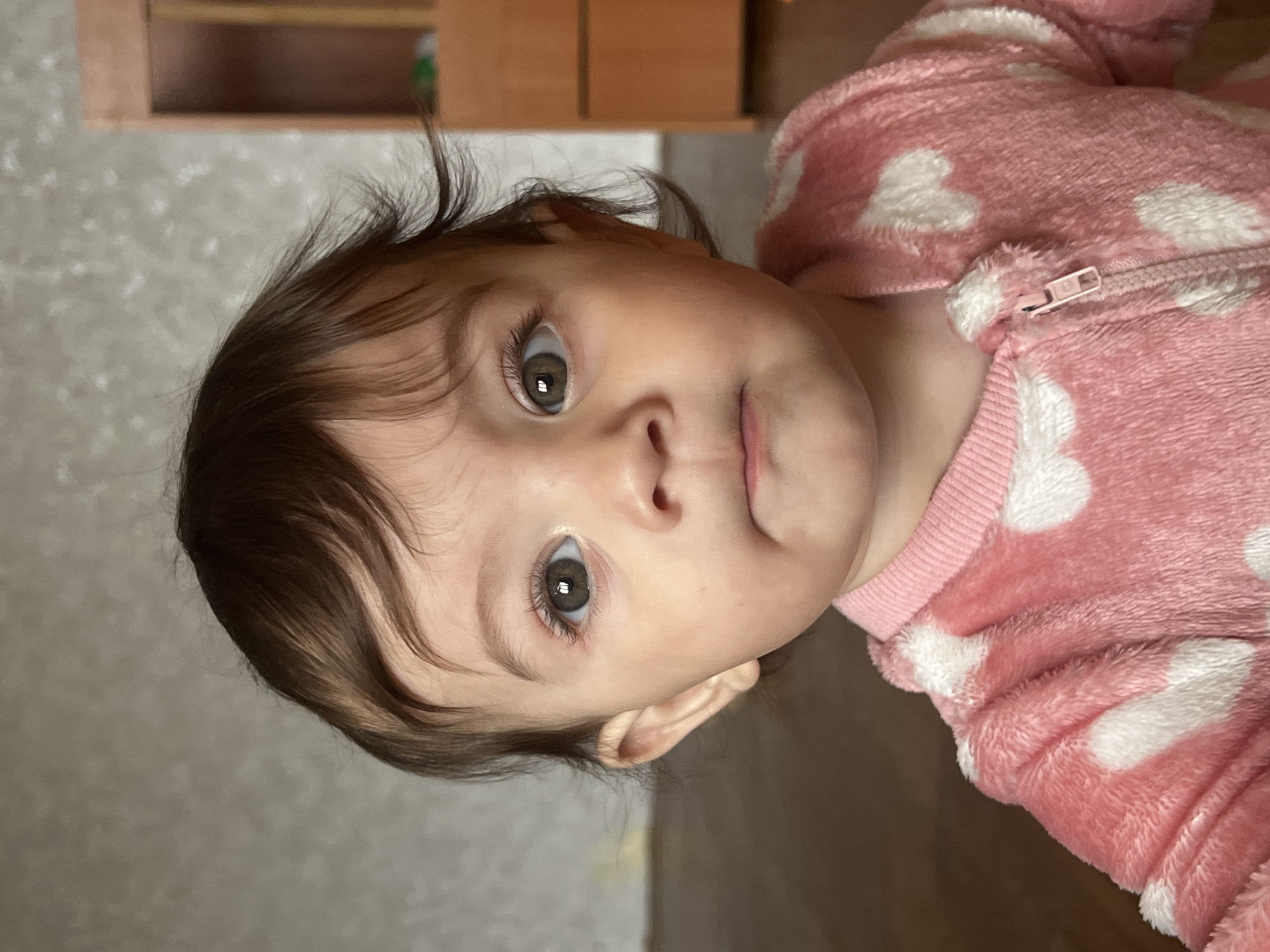 - "A close-up, slightly rotated shot shows a young child, likely a toddler, wearing a pink, fuzzy, heart-patterned onesie with a visible zipper at the neckline" by FM-xKA2M2, licensed under CC BY 4.0