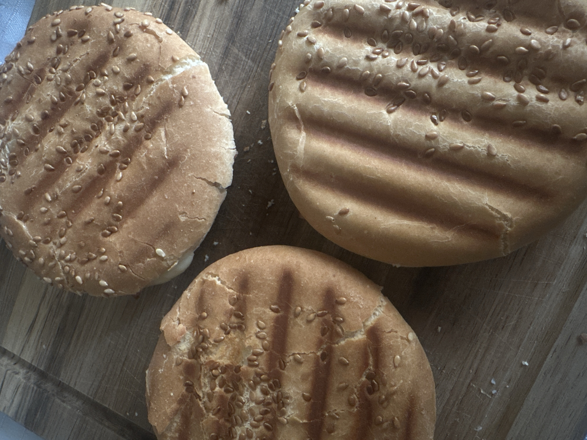 - "Three hamburger buns are on a wooden cutting board" by FM-hyPji2, licensed under CC BY 4.0