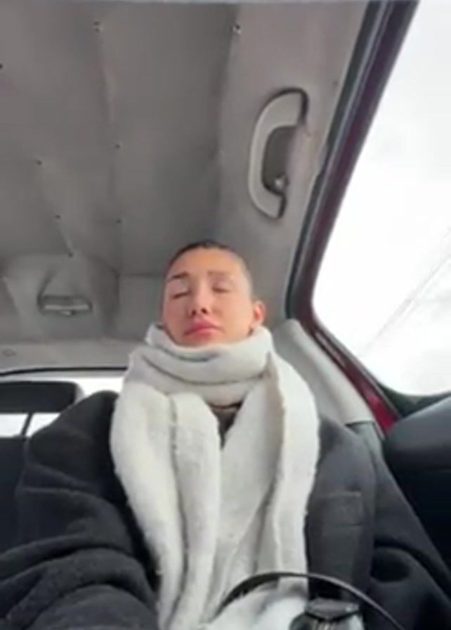 A young woman sits in the passenger seat of a car