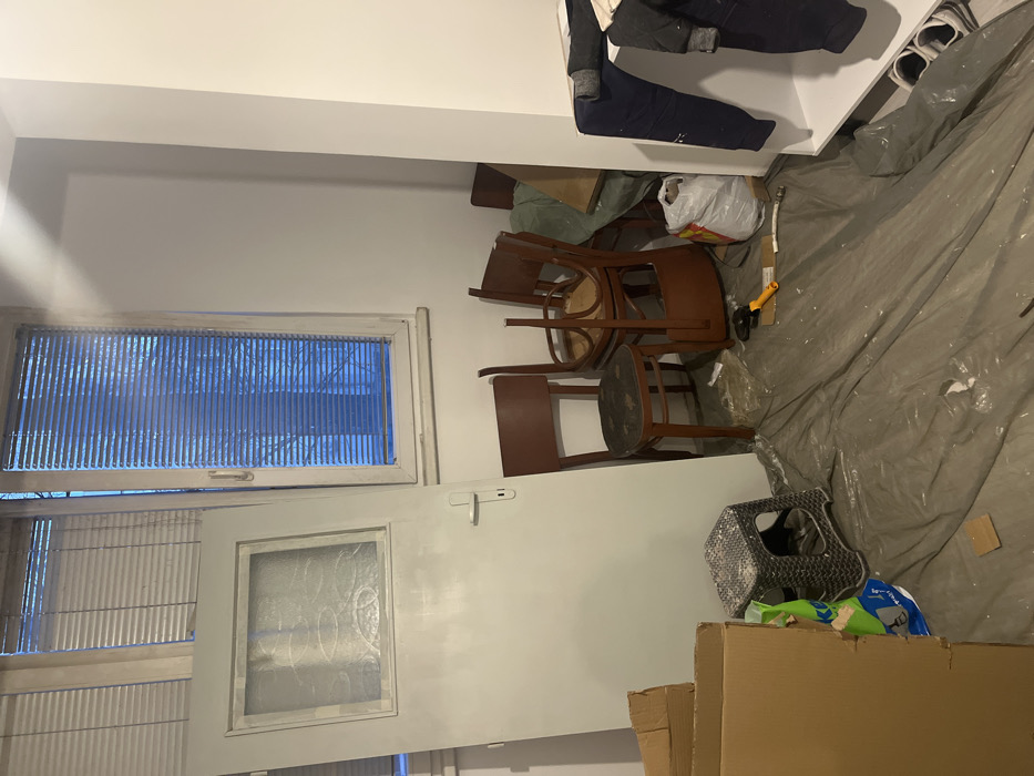 The image displays an indoor room in Sofia, Bulgaria, indicative of a space undergoing renovation or recent maintenance