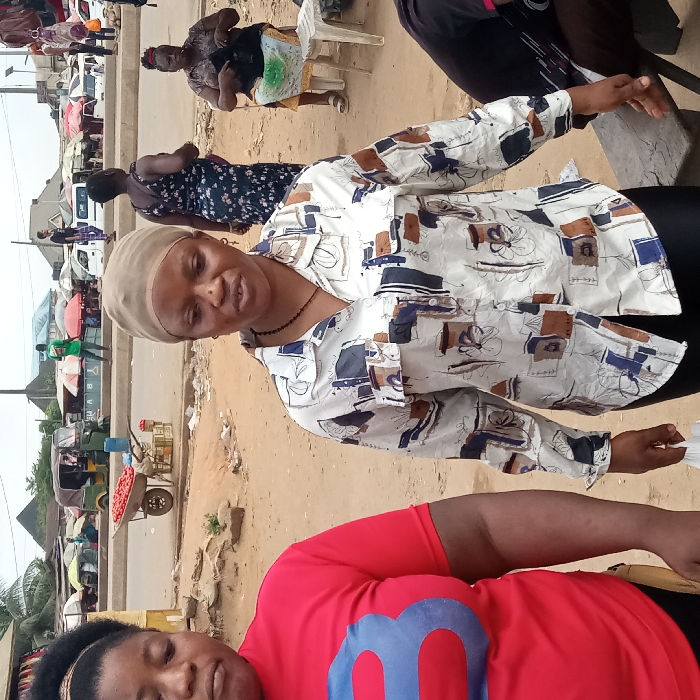 The image depicts an outdoor market street scene in Ura Nta Umuarandu, Nigeria