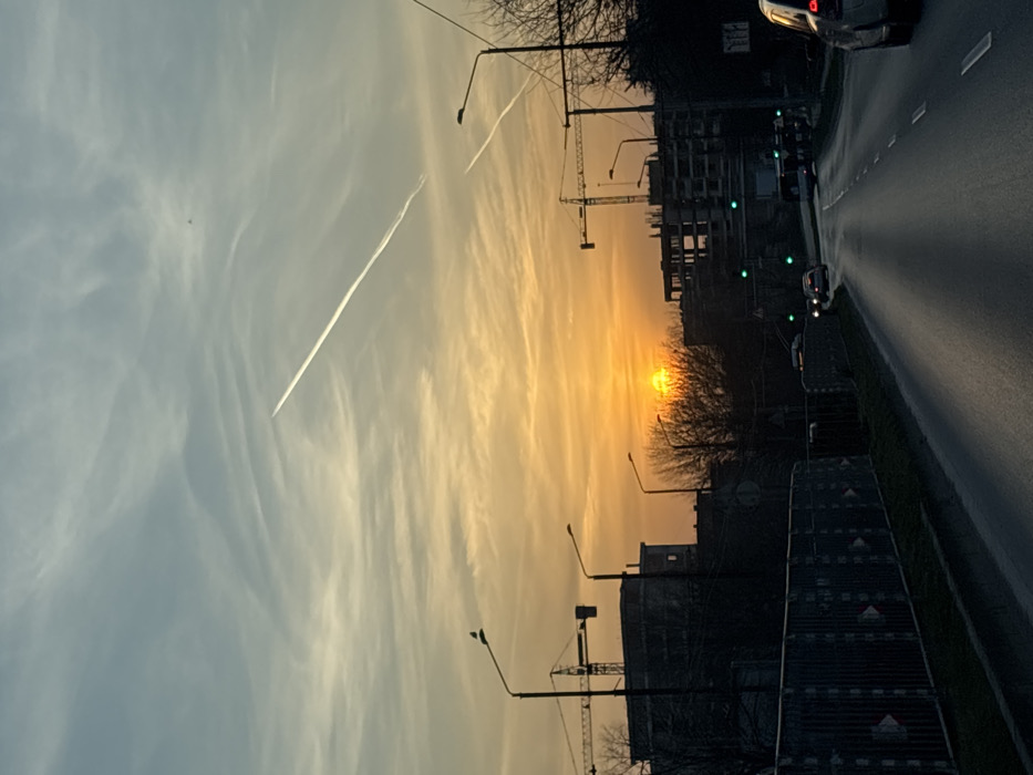 - "The image presents a street scene in Varna, Bulgaria, at either sunrise or sunset, with a prominent orange sun low on the horizon, casting a warm glow across the sky" by FM-nxafA3, licensed under CC BY 4.0
