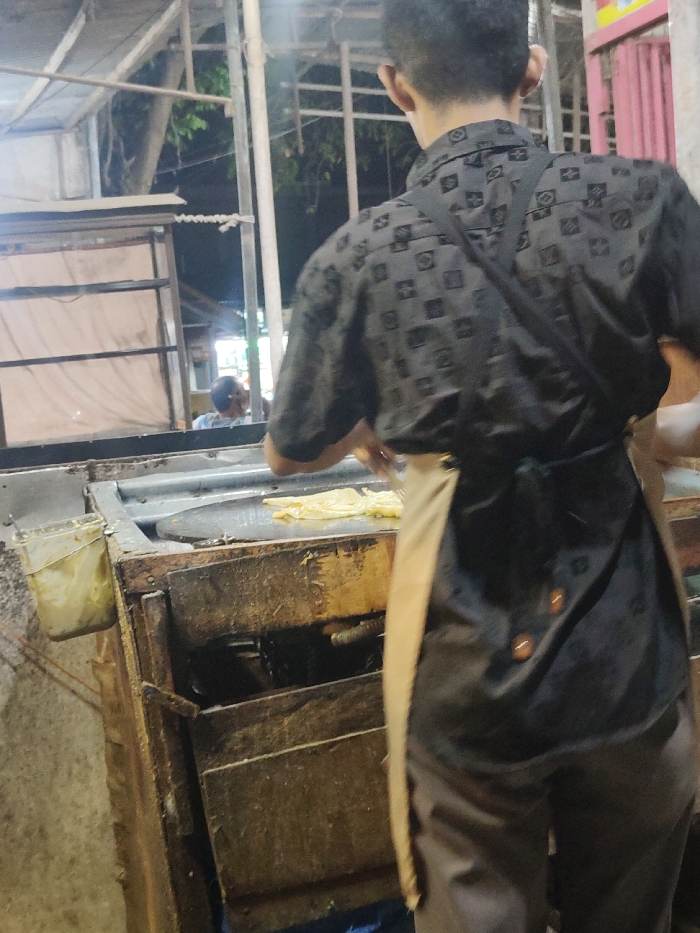 - "An outdoor nighttime scene in Peurupok, Indonesia, depicts a male street food vendor, viewed from behind, actively cooking" by FM-Fz47q1, licensed under CC BY 4.0