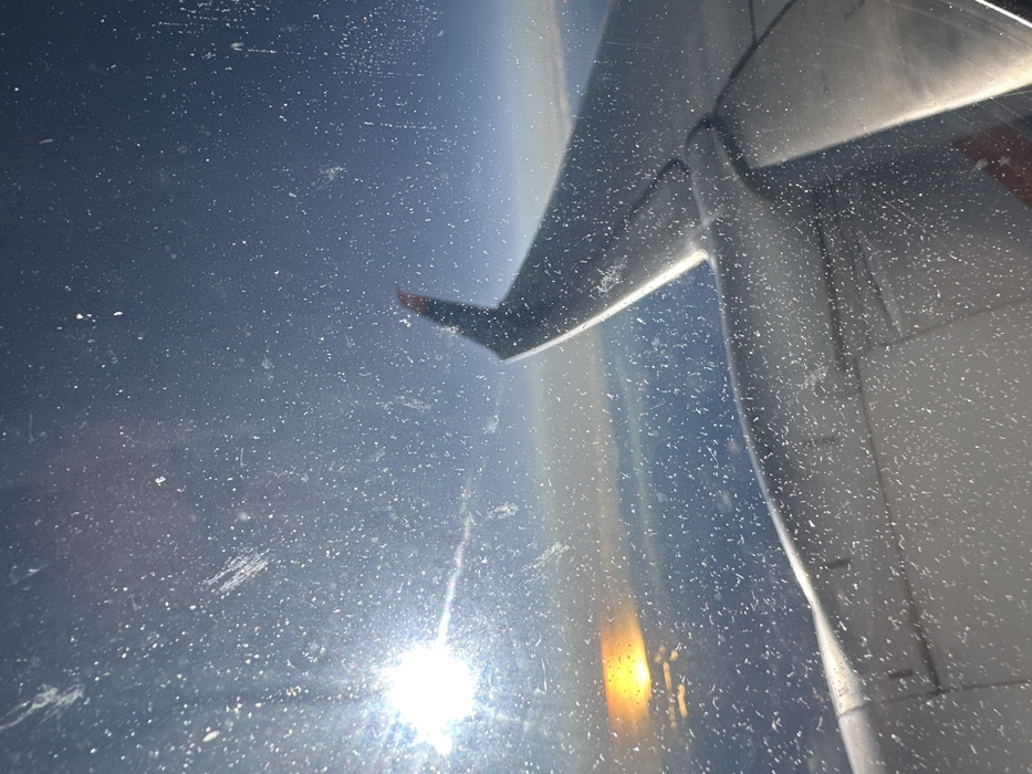 - "A distorted view from an airplane window reveals a wing extending across the right side of the frame" by FM-hAOA63, licensed under CC BY 4.0