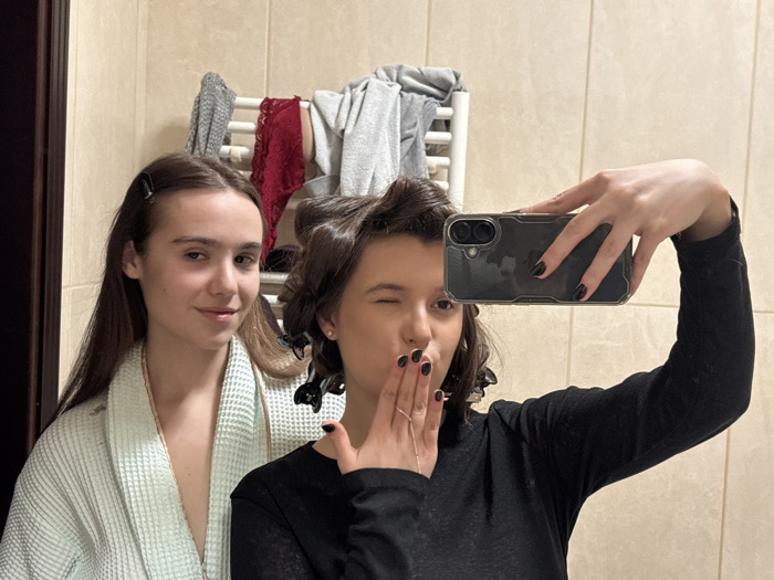 - "The image portrays two young females in a bathroom environment, captured as a mirror selfie" by FM-3pJMh1, licensed under CC BY 4.0