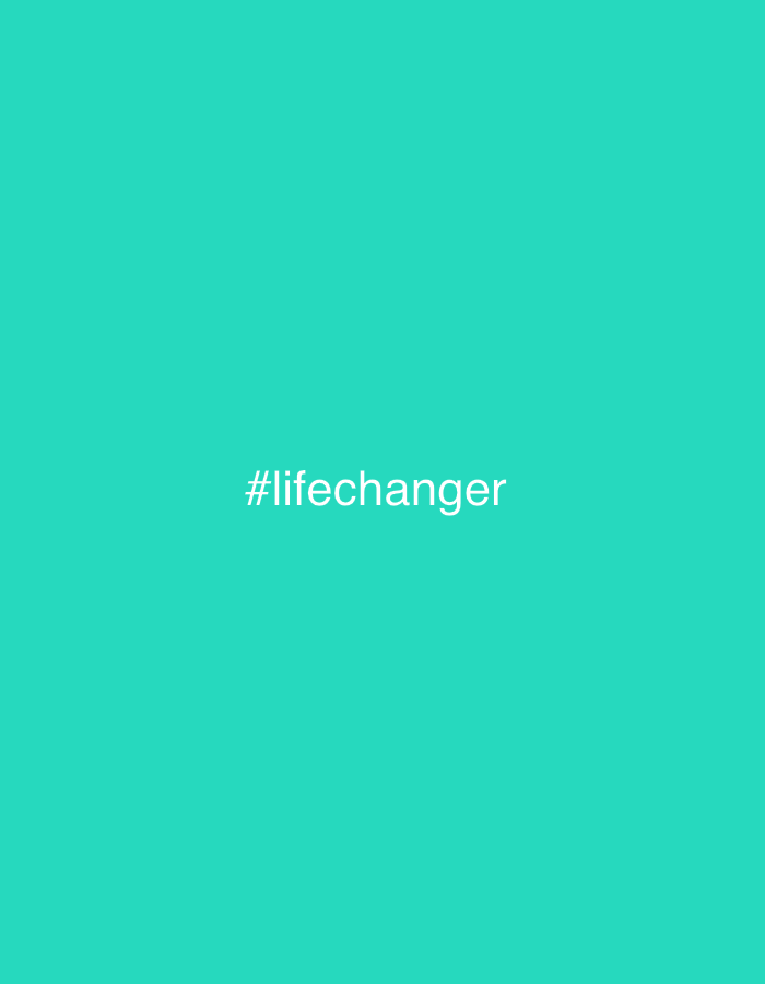 The image consists of a solid teal-colored background. Centered horizontally on this background, the white text "#lifechanger" is displayed. No discernible geographical location, including any specific area within Barcelona, Spain, is present in the image. There are no people, subjects, objects, actions, or interactions depicted. The environment is entirely abstract, consisting solely of a uniform color field.