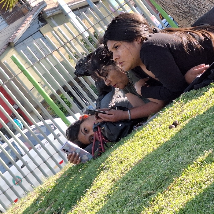 - "Three women are relaxing on a grassy hill, appearing to be absorbed in their phones" by FM-b0Aw43, licensed under CC BY 4.0