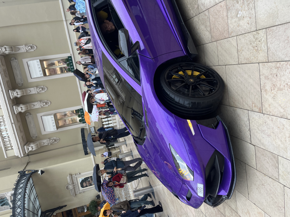 - "A vibrant purple Lamborghini supercar, likely an Aventador, is prominently featured on the wet, light-colored tiled plaza of the Place du Casino in Monte Carlo, Monaco" by FM-eWTi73, licensed under CC BY 4.0