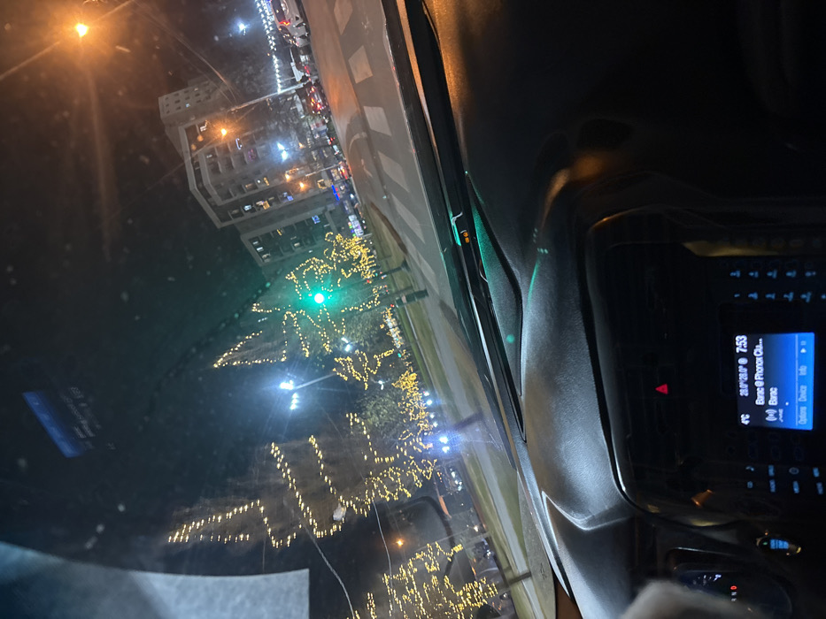 - "The scene depicts a nighttime urban environment viewed from inside a vehicle, specifically from the driver's or front passenger's perspective, with the dashboard visible in the foreground" by FM-CtEAd2, licensed under CC BY 4.0