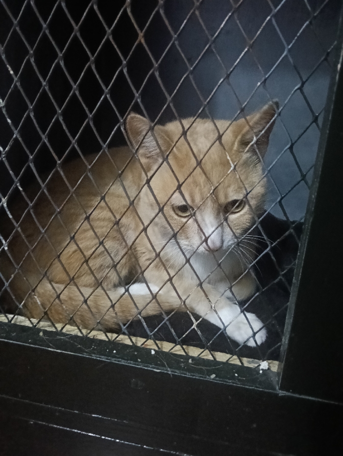 - "The image depicts a single adult domestic cat enclosed within a dark, diamond-patterned wire mesh structure, observed in an indoor setting in Nairobi, Kenya" by FM-E8rQG2, licensed under CC BY 4.0