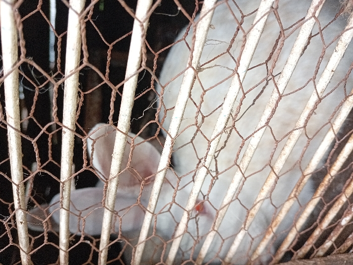 - "The image depicts a white rabbit confined within a cage in Nyeri, Kenya" by FM-FCCQg2, licensed under CC BY 4.0