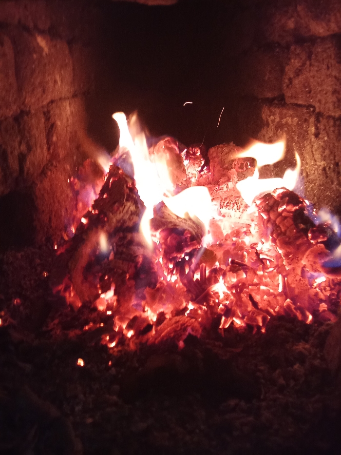 - "A close-up photograph captured in Yarun, Ukraine, depicts an active wood fire contained within a dark, stone- or brick-lined structure" by FM-ULG7s2, licensed under CC BY 4.0