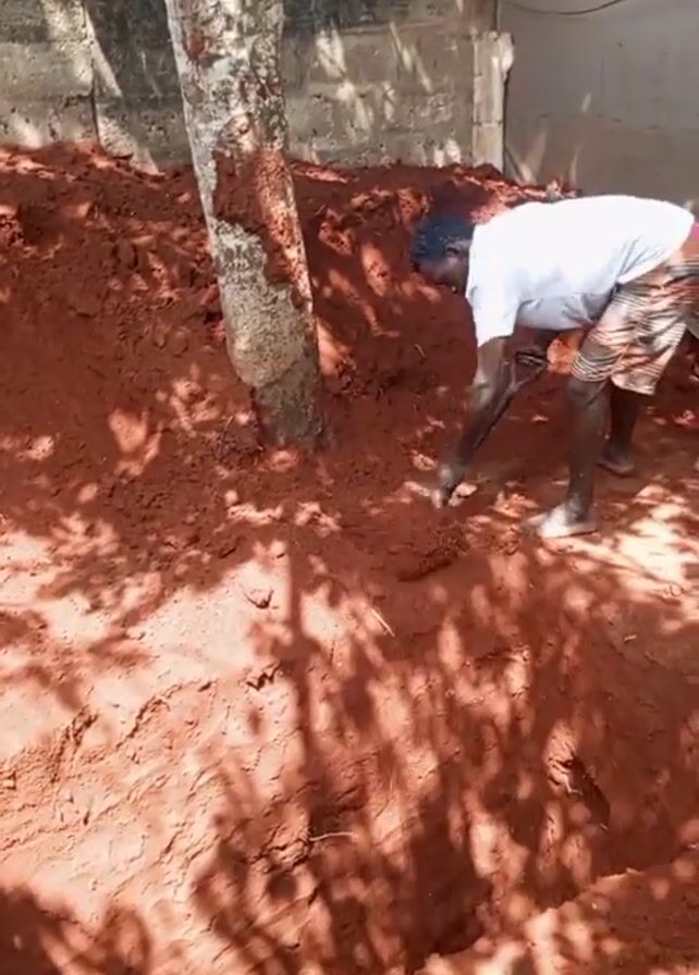 people digging a hole in red dirt