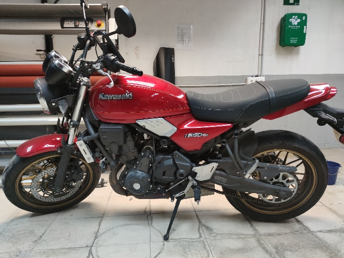 - "A red Kawasaki Z650RS motorcycle is parked indoors" by FM-128c92, licensed under CC BY 4.0