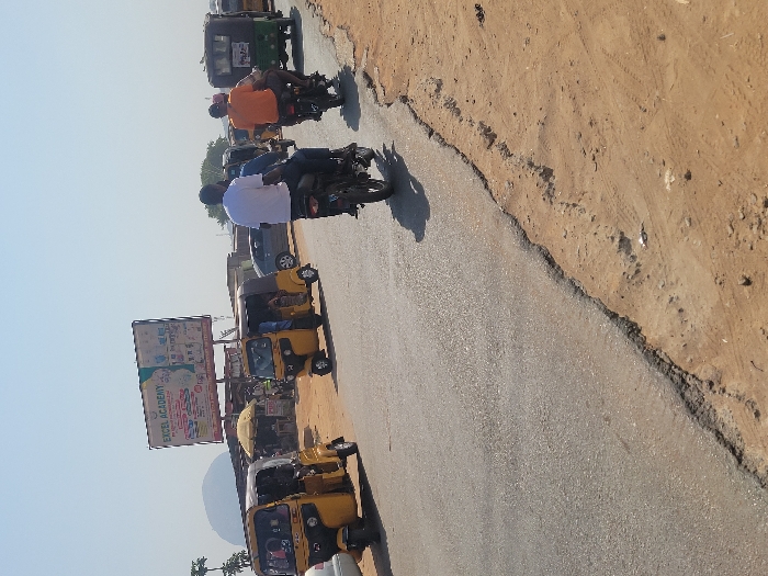 The image depicts a street scene in Kwamba, Nigeria, under clear daylight conditions