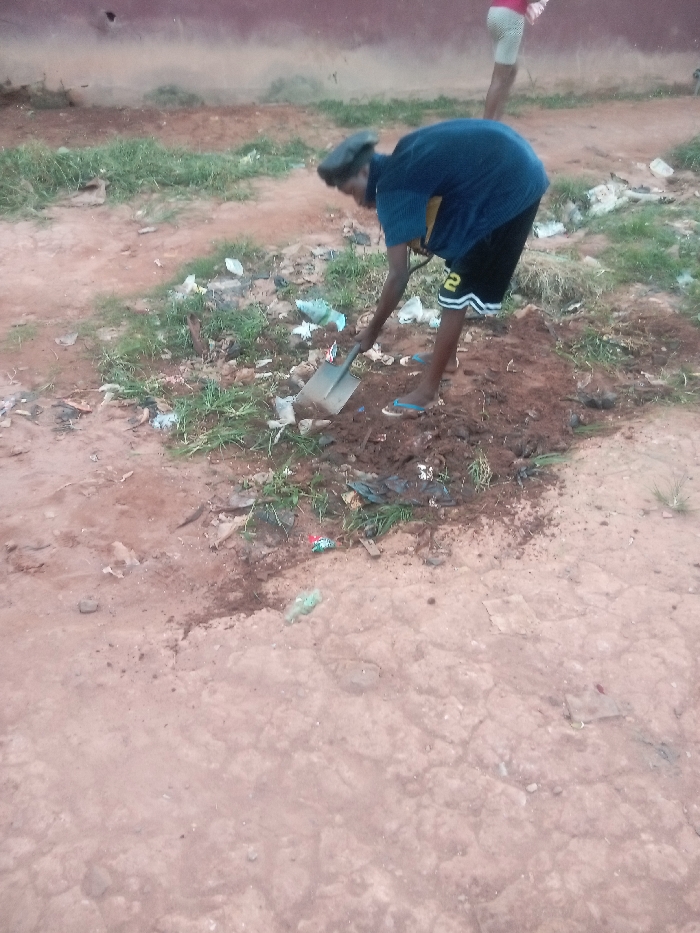 - "The scene is set outdoors in Ogidi, Nigeria, on reddish-brown dirt ground partially covered with sparse green vegetation and scattered refuse" by FM-m0BBE2, licensed under CC BY 4.0