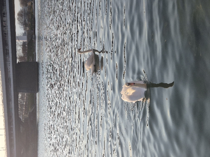 - "The image depicts two white swans swimming on the Danube River in Vienna, Austria" by FM-ARlry1, licensed under CC BY 4.0