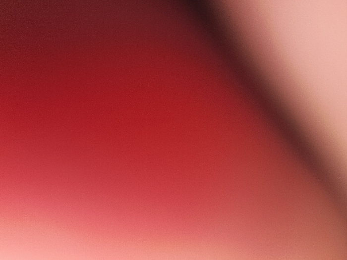 The image presents a gradient of colors. The dominant color is a deep red, transitioning to lighter shades of red and pink. A diagonal swath of shadow or darkness cuts across the frame, creating a distinct division between the red gradient and a pale, off-white or light pink area. The image appears soft and blurred, lacking sharp definition.