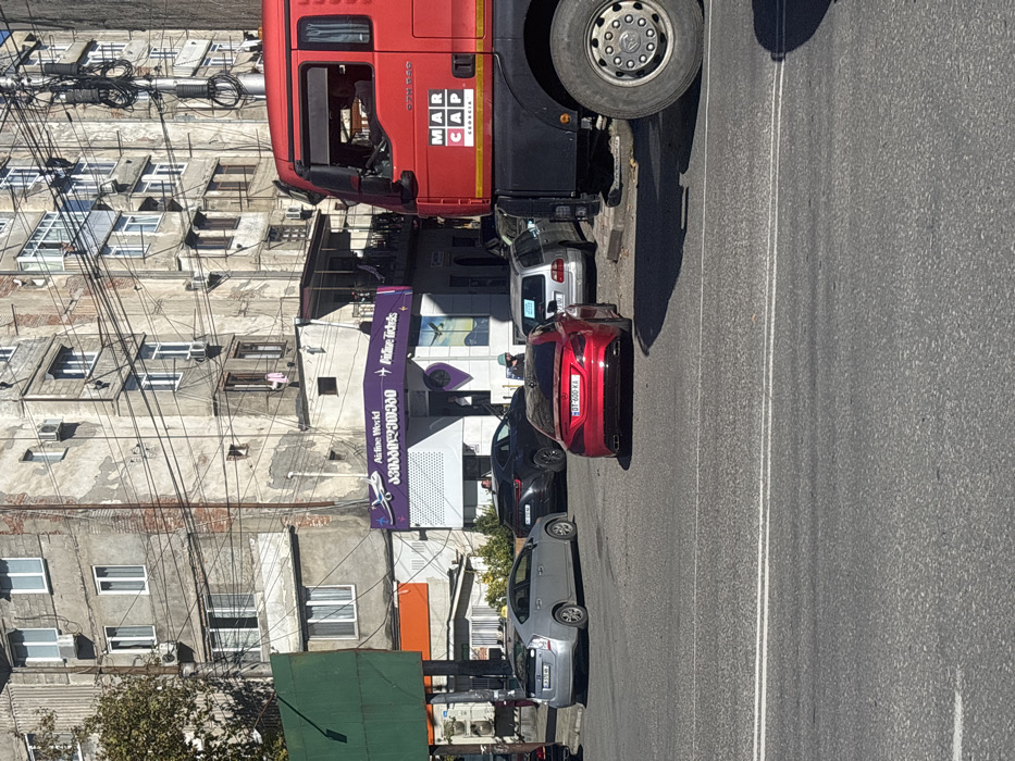 The image depicts a street scene in Kutaisi, Georgia, characterized by urban infrastructure and parked vehicles under daylight conditions