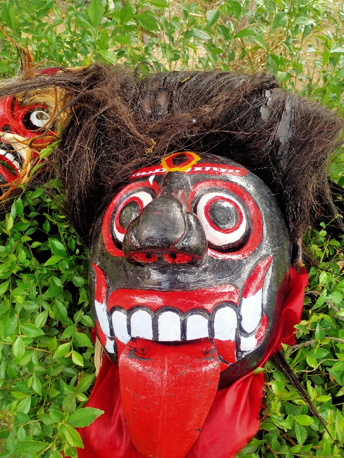 - "Two menacing masks rest among vibrant green foliage" by FM-3Xduo1, licensed under CC BY 4.0