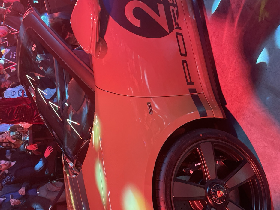 This image depicts a Porsche 911 S/T sports car on display at an indoor event in Mexico City, Mexico