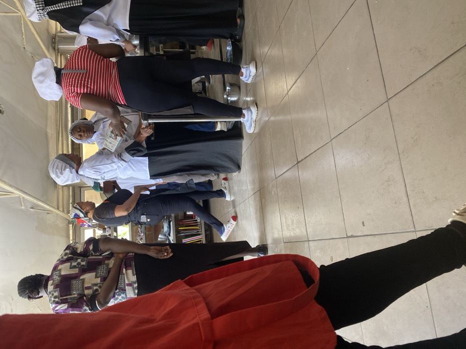 This image depicts an active indoor scene, likely a culinary training facility or professional kitchen, located in Gwarinpa, Nigeria