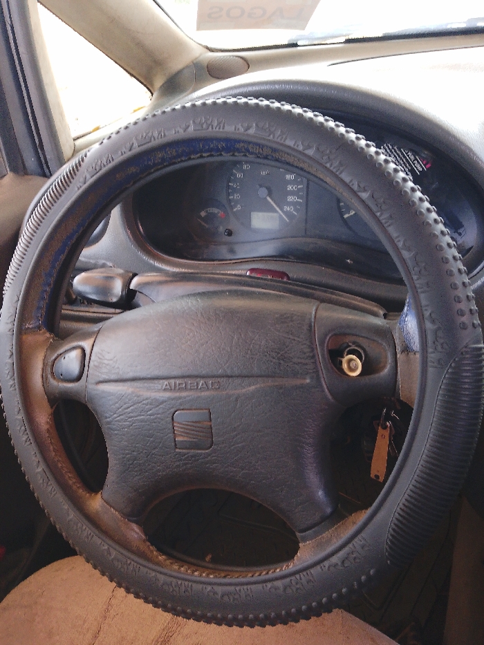The scene depicts the interior of a vehicle, located in Kuru Dungus, Nigeria, specifically focusing on the driver's area