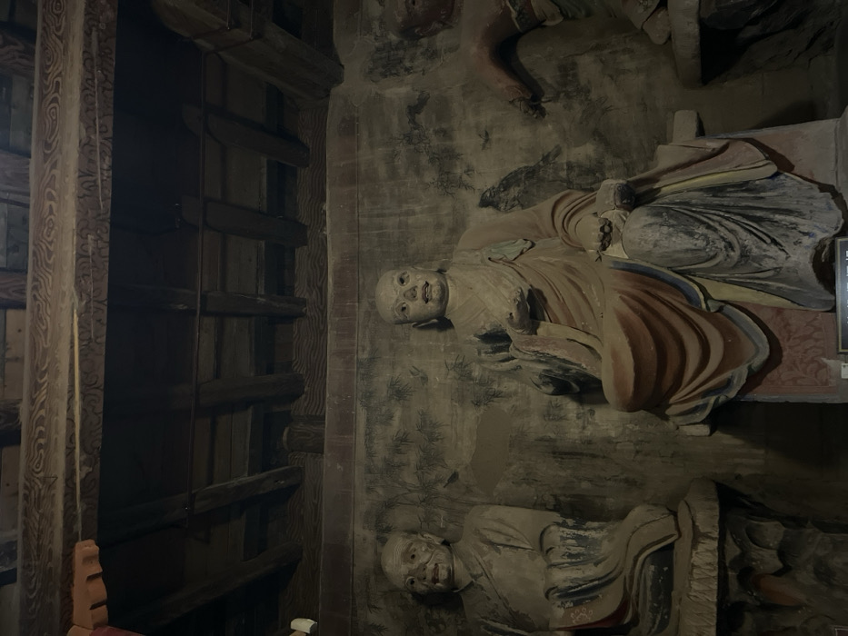 - "The image depicts three ancient, weathered Buddhist statues positioned in a dimly lit interior hall, likely within the Giant Buddha Temple (Dafo Temple) complex in Zhangye, China" by FM-VYYYD2, licensed under CC BY 4.0