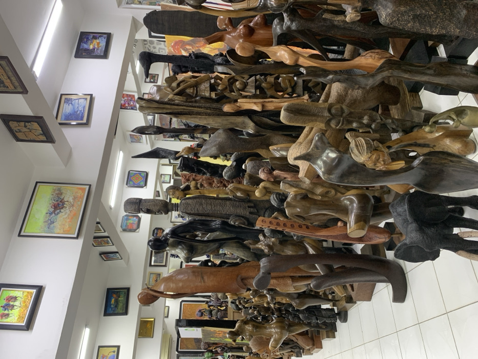 This image depicts the interior of an art gallery or shop located in Ikate, Nigeria