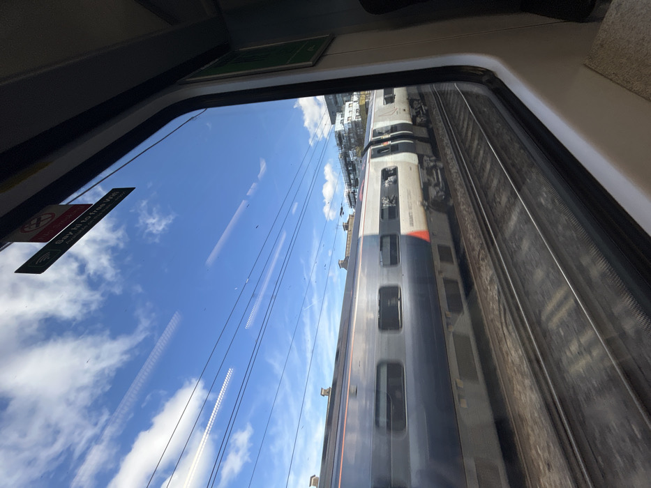 - "The image depicts a railway scene viewed from inside a moving train, looking out a window" by FM-PtehC2, licensed under CC BY 4.0