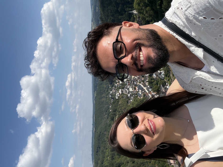 - "A high-angle outdoor photograph depicts two individuals, one female and one male, positioned in the foreground against the panoramic backdrop of Vianden, Luxembourg" by FM-euyLP2, licensed under CC BY 4.0