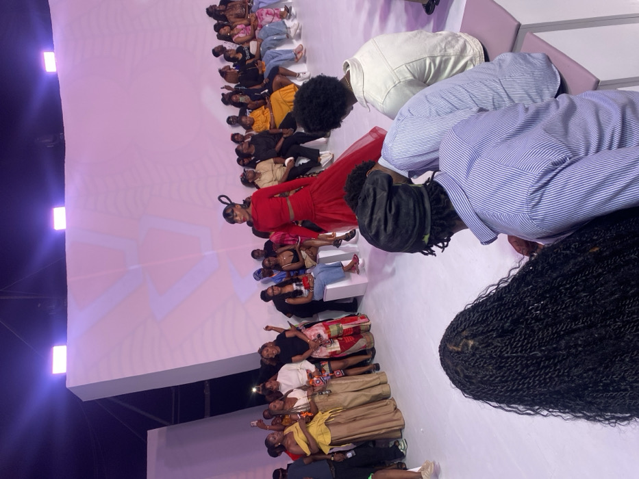 The image depicts a fashion show or runway event taking place in Itirin, Nigeria