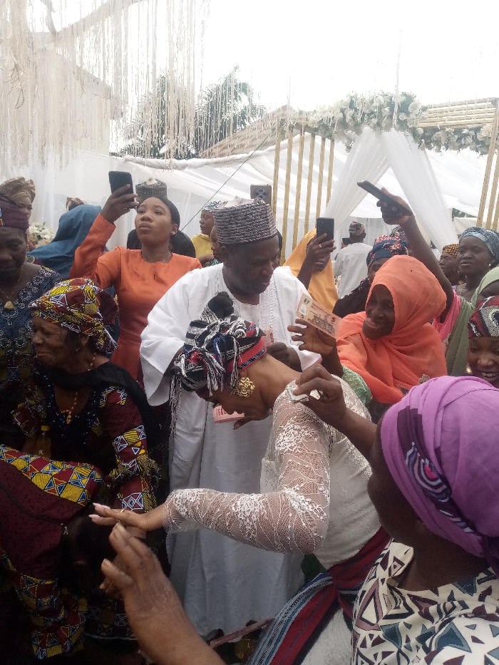 The image captures a scene at a wedding ceremony in Lafia, Nigeria, specifically at the coordinates 8